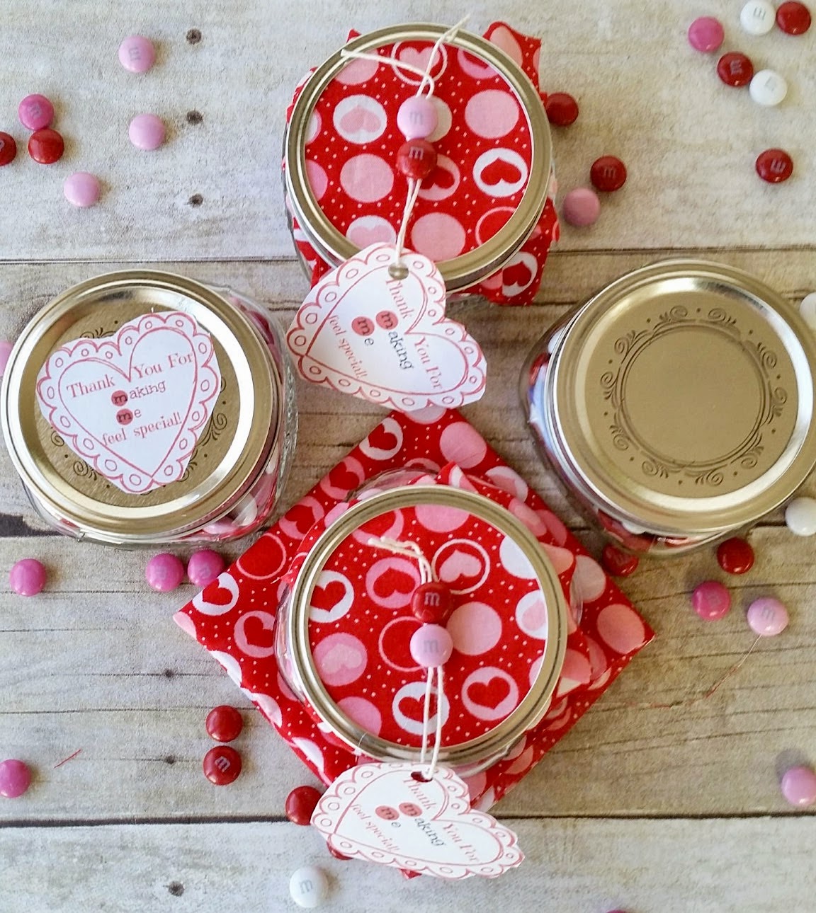 We created this mason jar gift to give to friends, teachers, and coaches! Filled with M&Ms makes this one sweet gift!