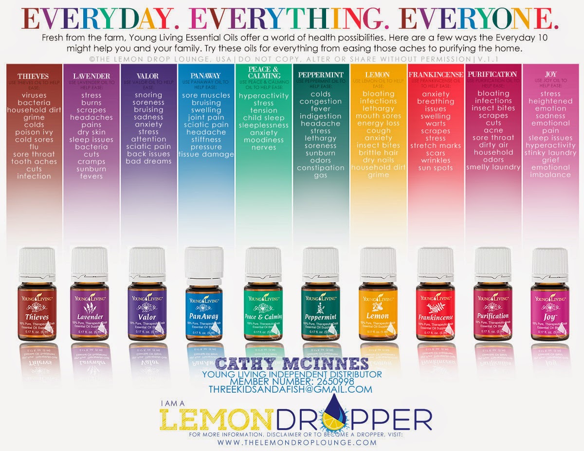 Thieves- has been great for creating my all natural house cleaners. It also took away some sore throats in our house.